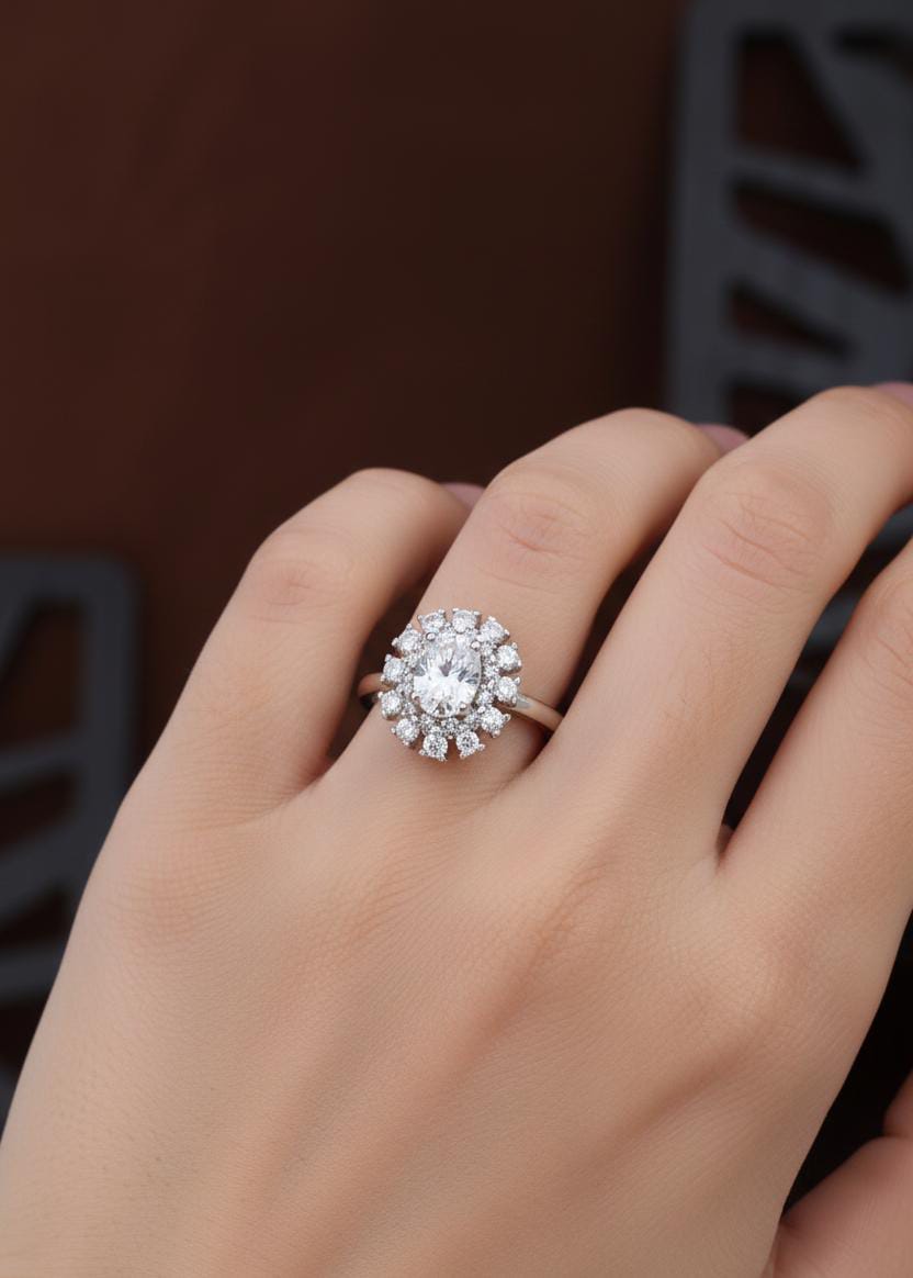 Illuminate your hand with this lightweight 925 Sterling Silver Halo Cluster Ring. Featuring a brilliant central oval cubic zirconia (CZ) stone encircled by a dazzling frame of accent stones, this piece creates a magnificent, sparkling effect. Perfect for women seeking elegant regular wear jewelry, this beautiful, hypoallergenic ring provides luxurious style and comfort every day.